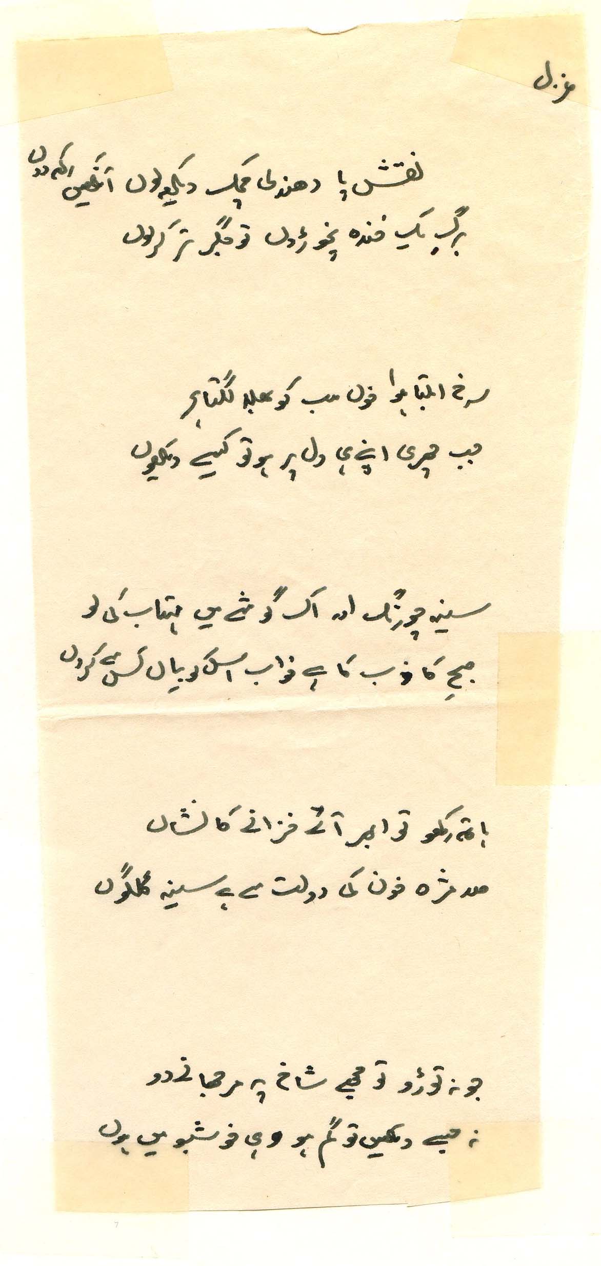*handwritten Urdu text by the author, early 1980's*