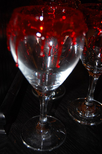 As we cast about for a satisfactory 'connection' between the lines, we're obliged to go back and pay close attention to the word siilii , which has the basic meaning of a slap or cuff, or specifically a blow with the hand on the back of the neck (see the definition above). This suggests just the kind of blow that a stone might inflict-- on a neck, or a face, or a cheek. The result would surely be, at a minimum, a conspicuous patch of redness on the skin. (On the stoning of madmen, see {35,10}.) We can imagine the mad lover turning up at the fashionable evening party. He looks festive, with a heightened 'tulip' color in his cheeks, and the heedless observer (the beloved? a random, typical guest?) thinks he's been drinking wine along with everybody else. (Or else the observer thinks the 'glass' of his heart has been holding the 'wine' of enjoyment, to make his face so flushed.)