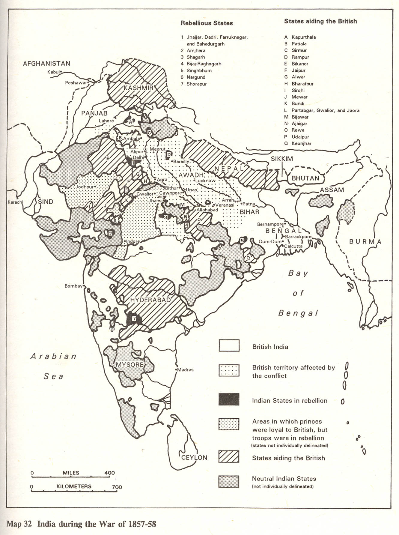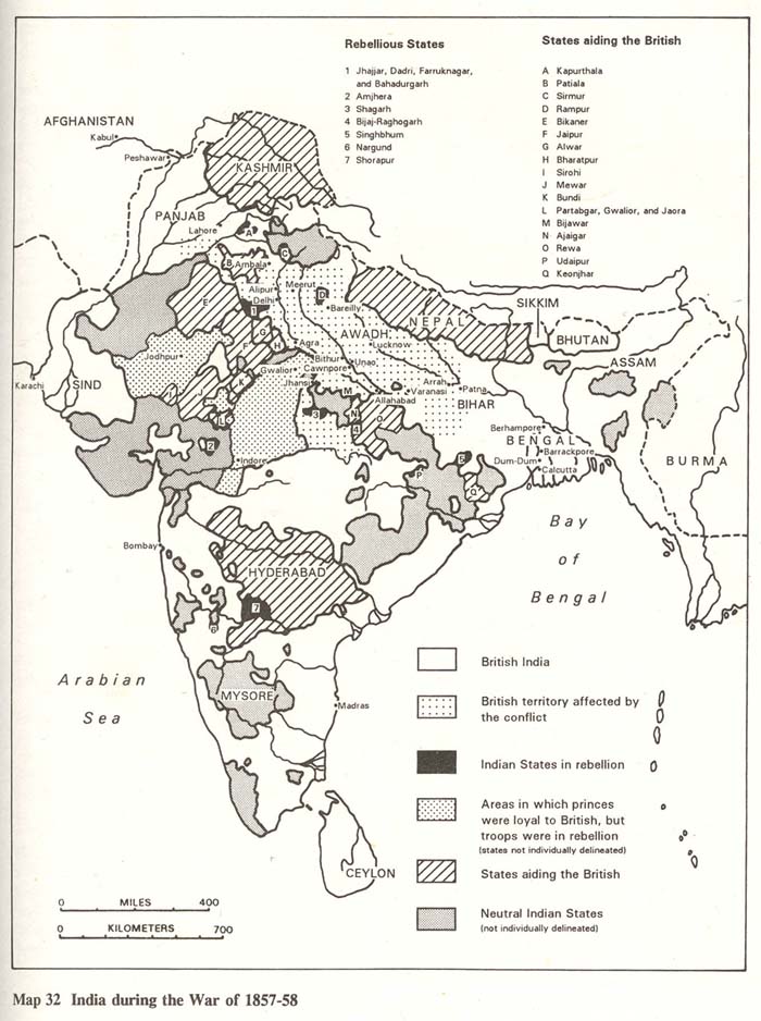 The alignments of states during the Rebellion of 1857; CLICK ON THE MAP FOR A VERY LARGE SCAN