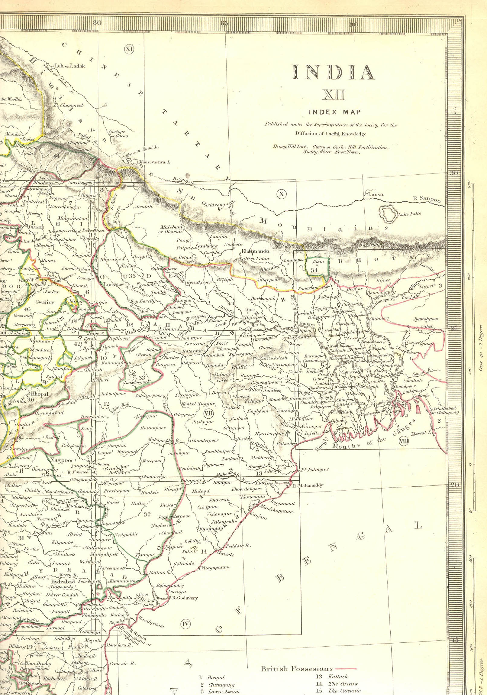 MAP XII: "India XII: Index Map, "by SDUK, c.1830's, with original