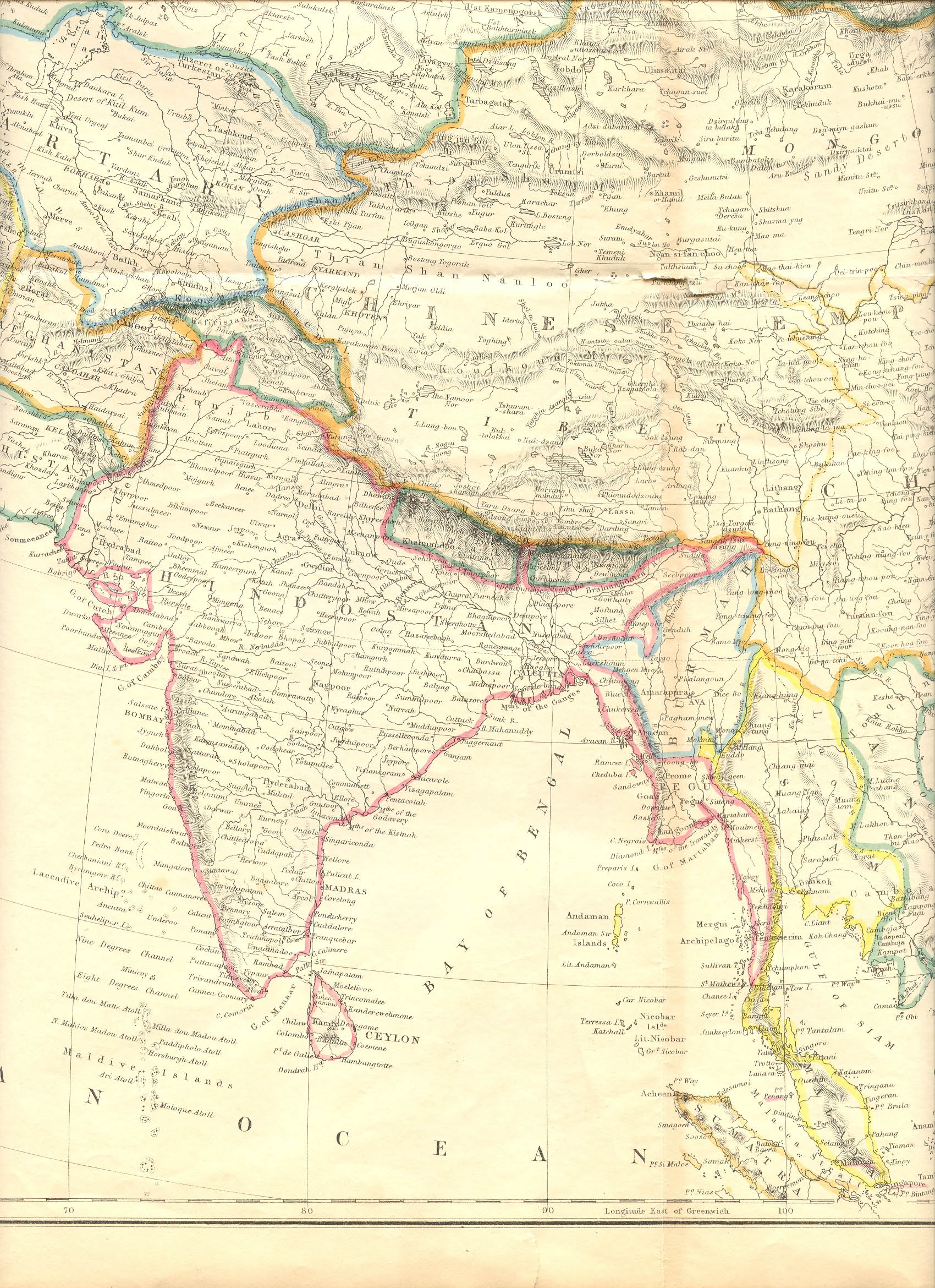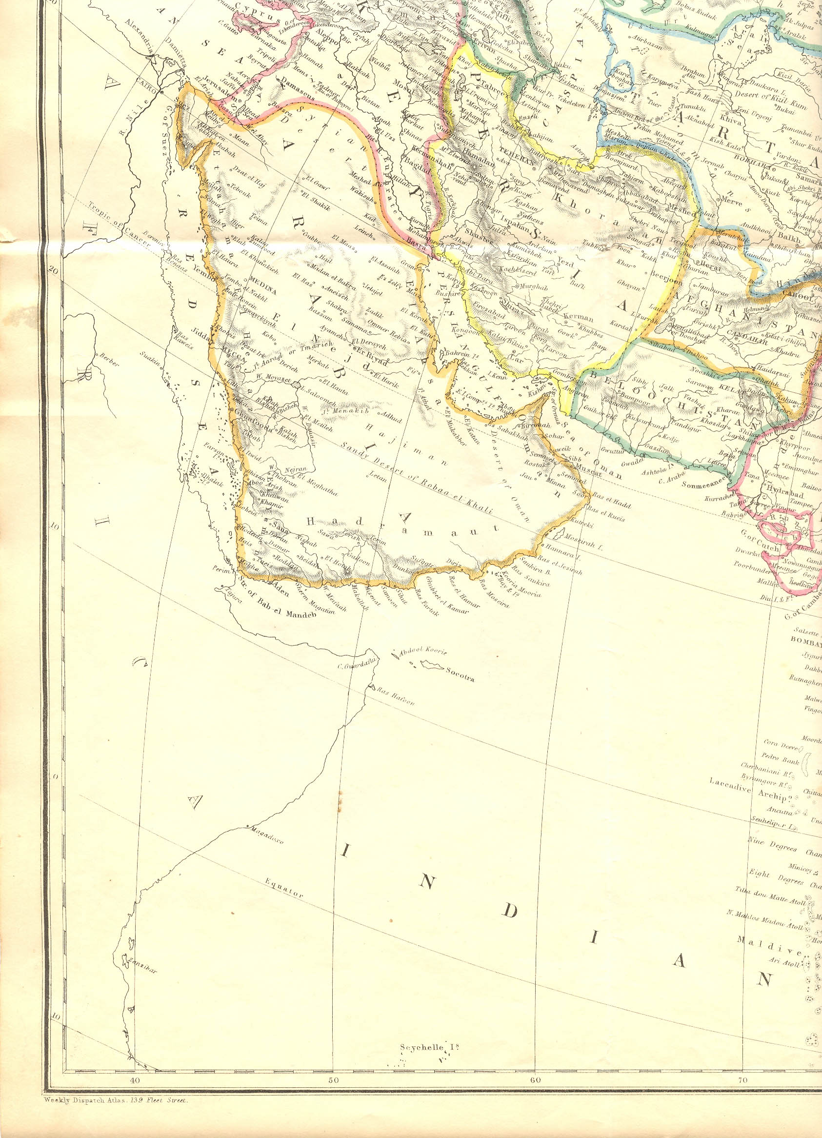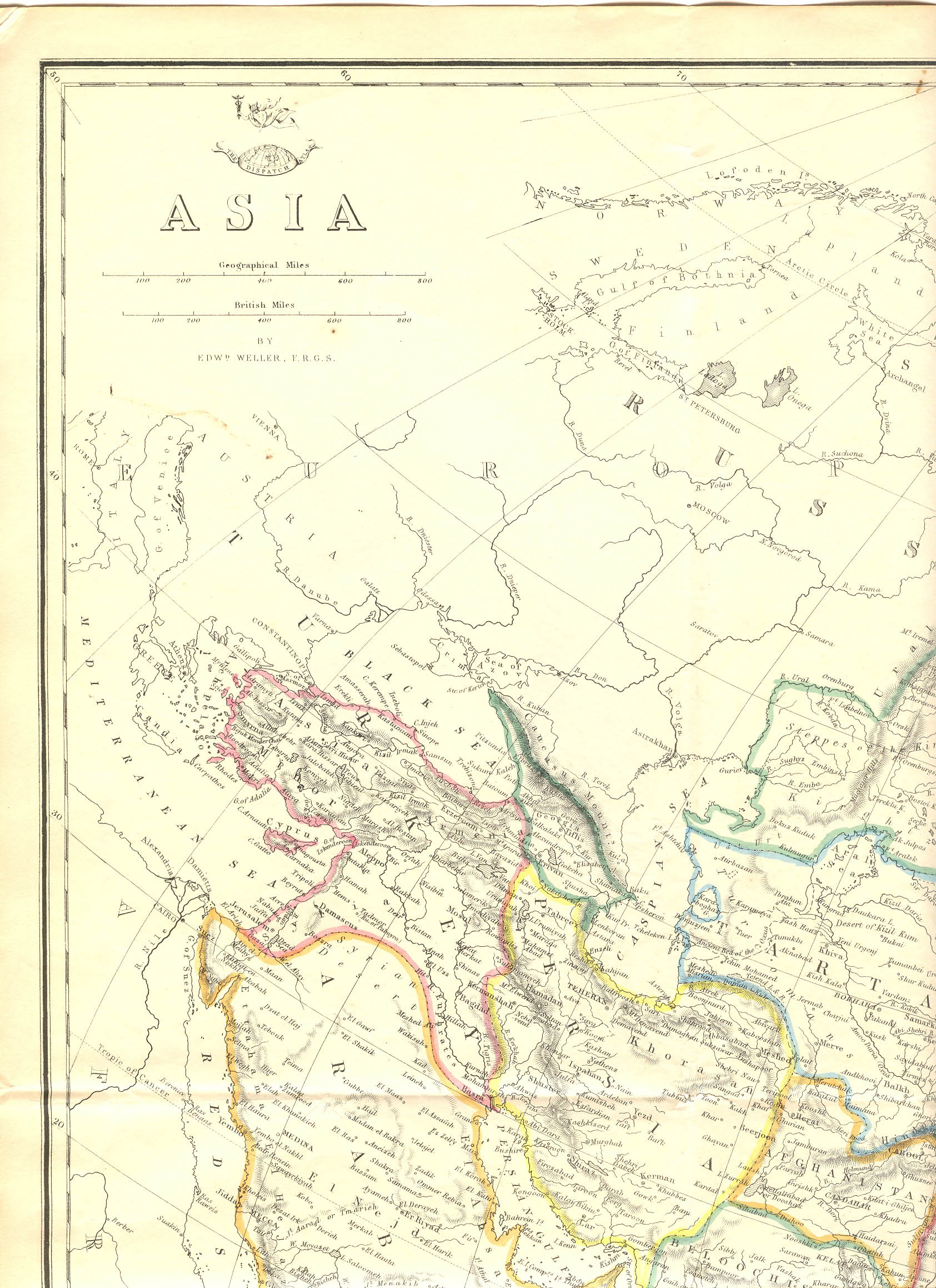 A double-sized map by Edward Weller for the Weekly Dispatch Atlas, c.1860, with original hand coloring; CLICK ON ANY PART OF THE MAP FOR A VERY LARGE SCAN