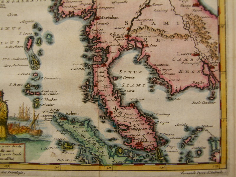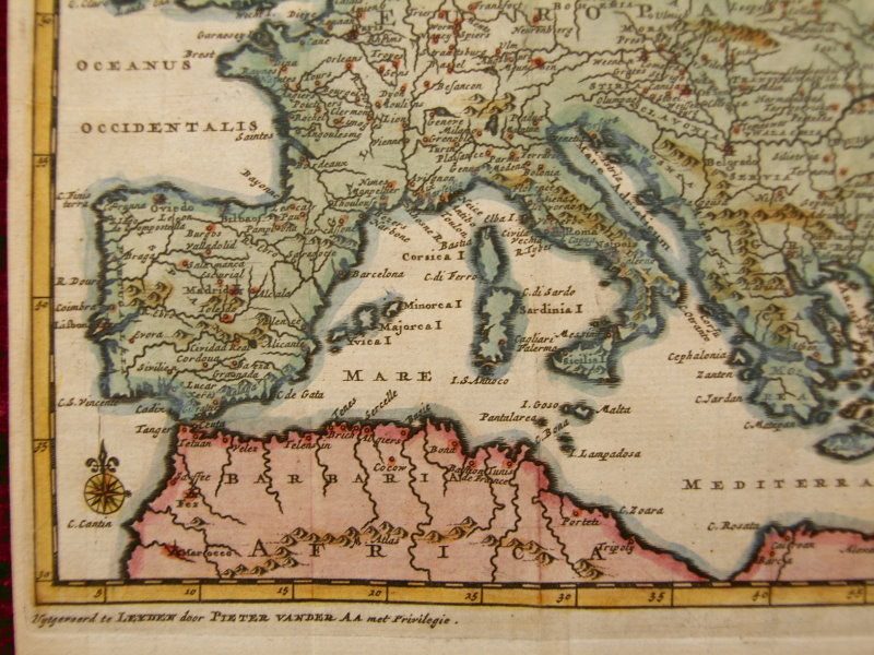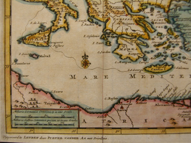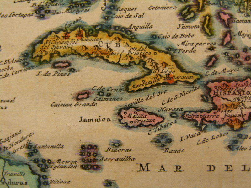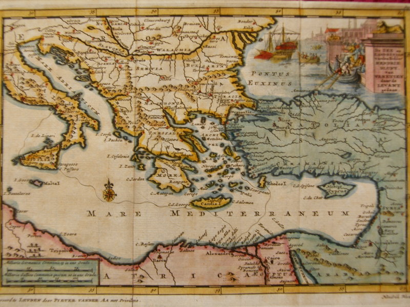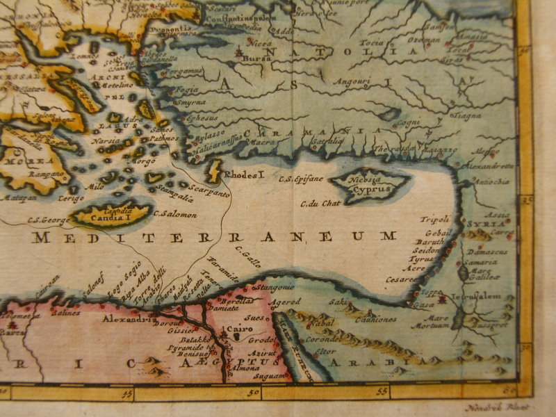 1706-07, with modern hand coloring; more maps from the same atlas: