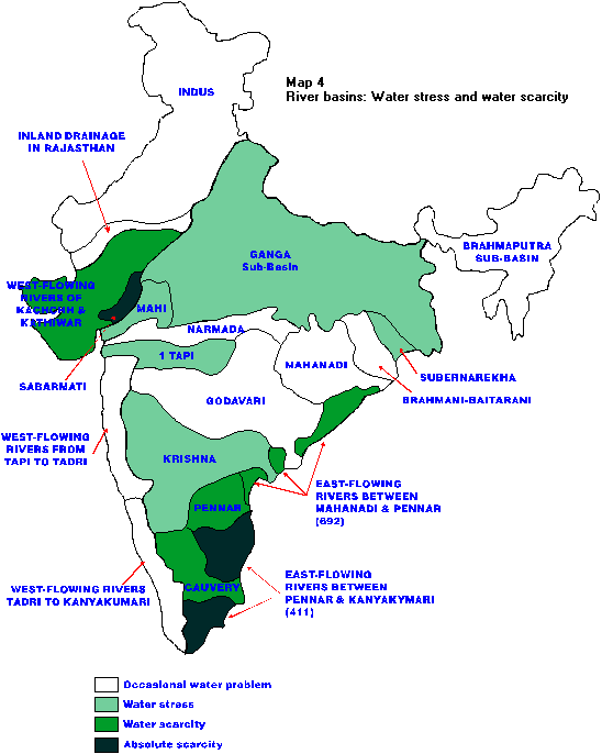 Major river basins of India and the modern water supply situation