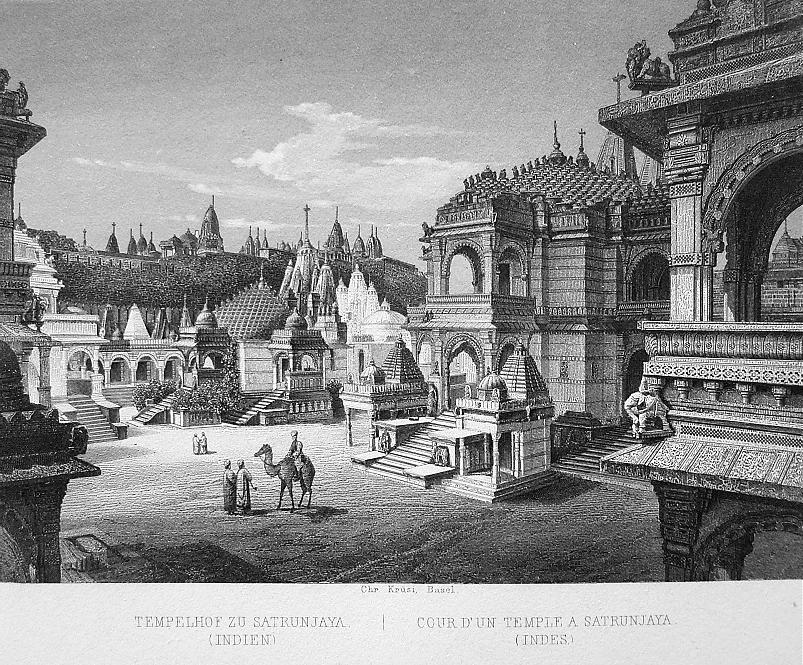 "Court of a temple at Satrujaya," a steel engraving, 1860's (Vogelin)