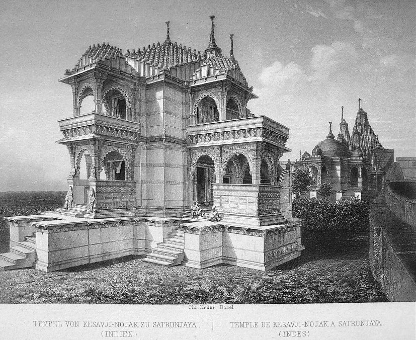 "Kesavji Nojak Temple at Satrujaya," a steel engraving, Basel, c.1860