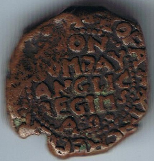 Another example of these earliest British Indian "copperoon" coins, from 1678