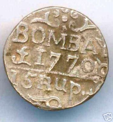 A silver 15-rupee coin from the Bombay mint, 1770