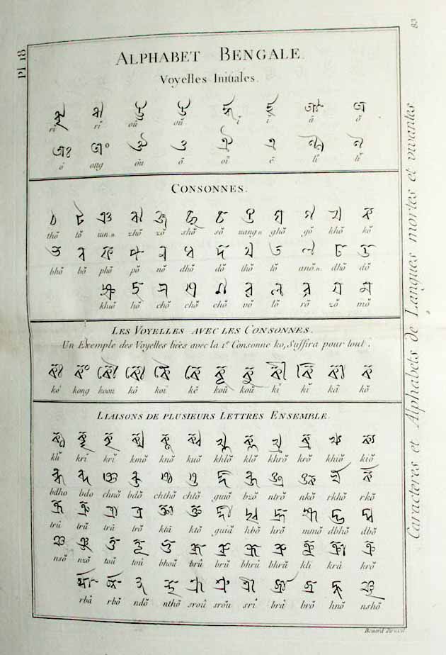 Diderot, the French Encyclopedist, included in his vast work this chart of the Bengali alphabet