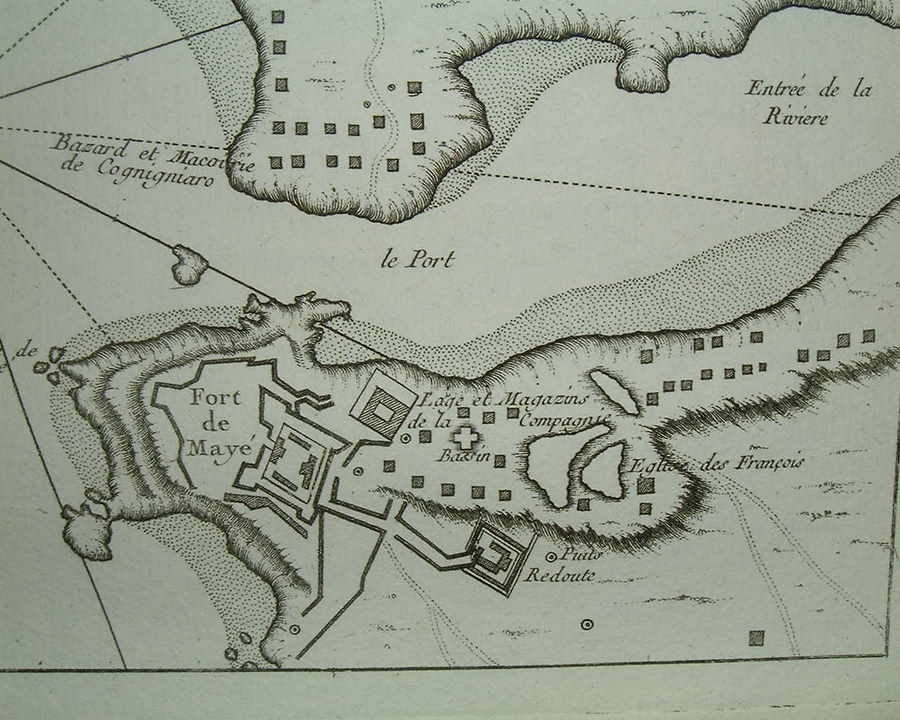 The small fort of Mahe, south of Cananore; in a view by Bellin, 1764; *a closeup of the Fort itself*