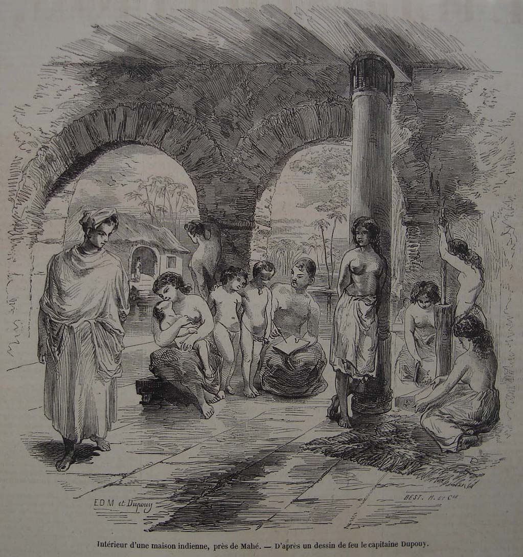 "Interior of an Indian house, near Mahe," a French print from 1855