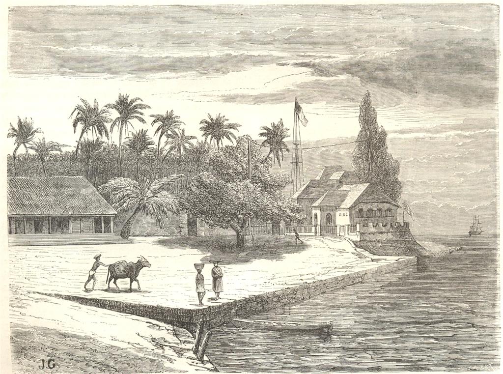 A view of Mahe, from 'Le Tour du Monde', 1863; *another view of the wharf*