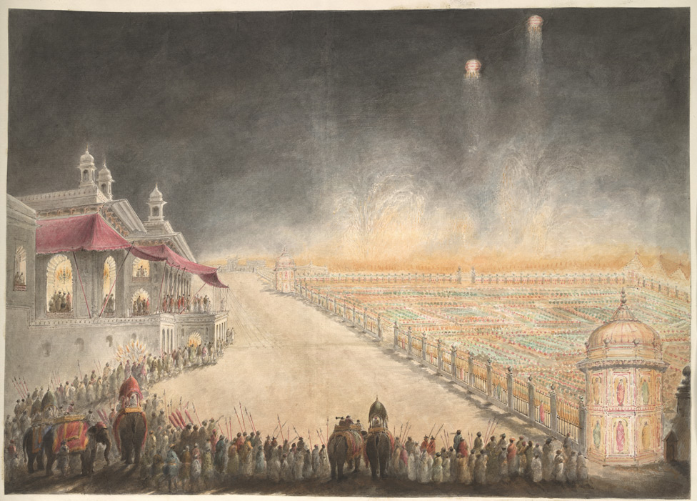 *The grounds of the palace of Farhat Baksh in Lucknow lit by innumerable coloured lamps; a watercolor by Seeta Ram, 1814-15* (BL)