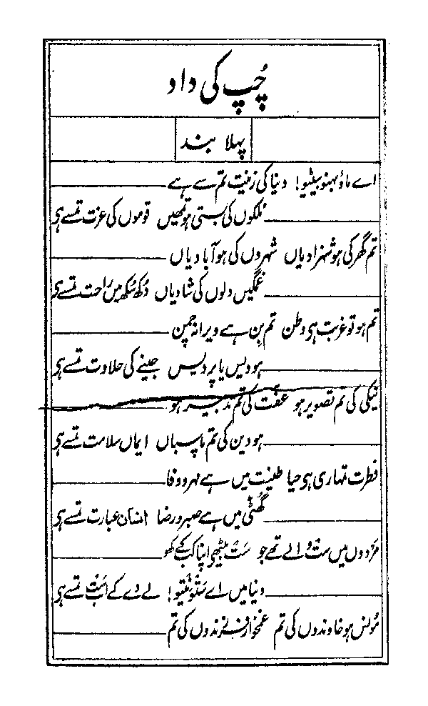 1a) [*urdu 1*] oh mothers, sisters, daughters! the adornment of the world is through you